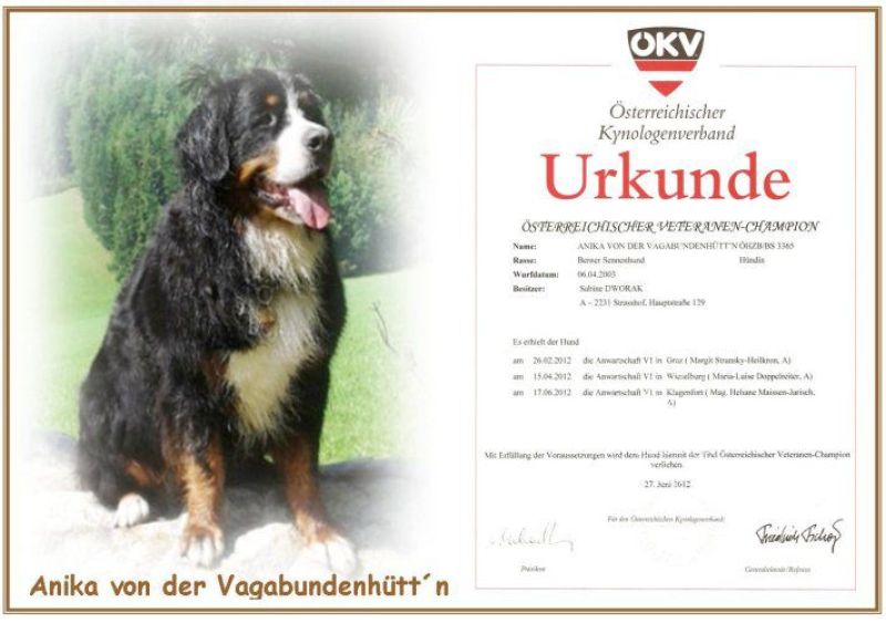 Herzlichen Glückwunsch! Casanova von der Vagabundenhütt’n ist seit 14.06.2012 CROATISCHER CHAMPION und Anika von der Vagabundenhütt´n ist Österreichischer Veteranenchampion!! |